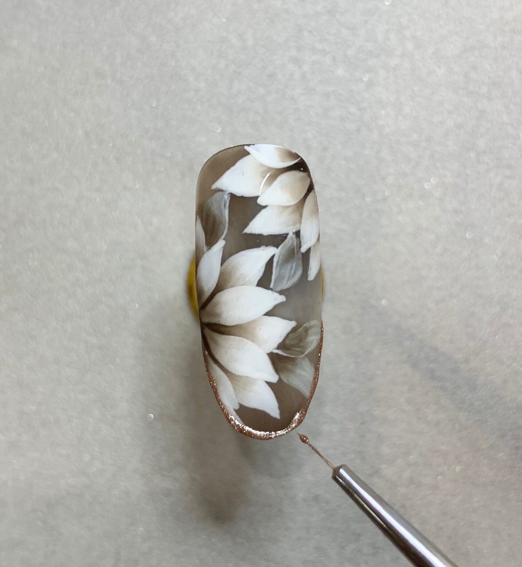 『tres clair powder』(ベージュゴールド)を上から直接擦り付けてミラーアートを楽しめます。