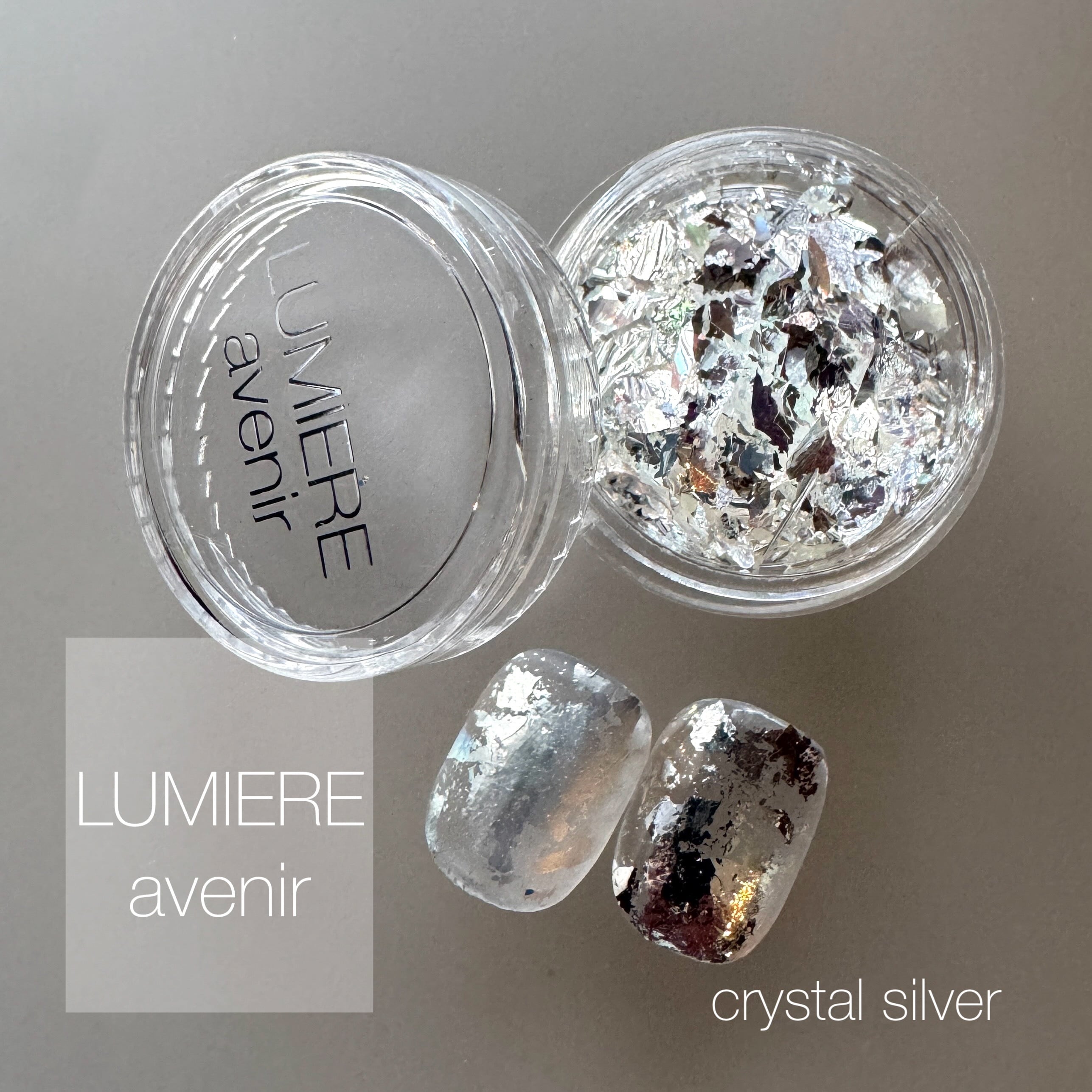 カラーレスな中にもほんのりオーロラ感があり、一見シルバーのようですがフォイルと違う明るいシルバーカラーが楽しめます。
